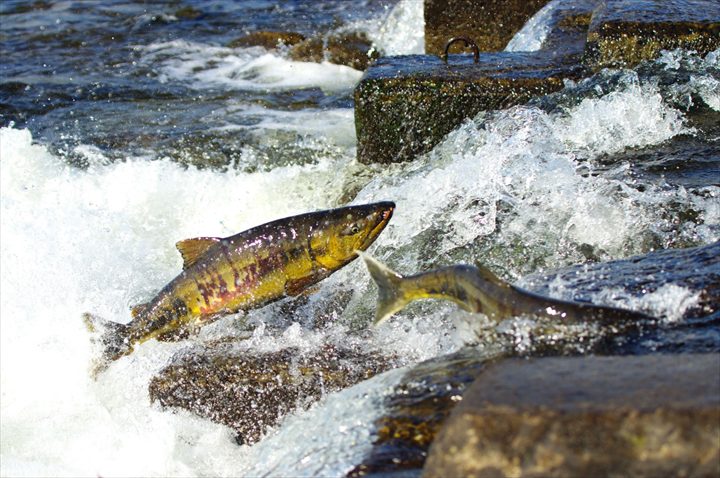 産卵期には背中が大きく盛り上がったように見えることから「セッパリマス」とも呼ばれます。英名は「ピンクサーモン」と呼ばれ、サクラマスと少し混同してしまうところかもしれません。日本国内でカラフトマスの遡上が見られるのはほとんどが北海道の川。ただサケやサクラマスなどと違う点は、遡上してくる川がふるさとの川に限定されていないことのようです。