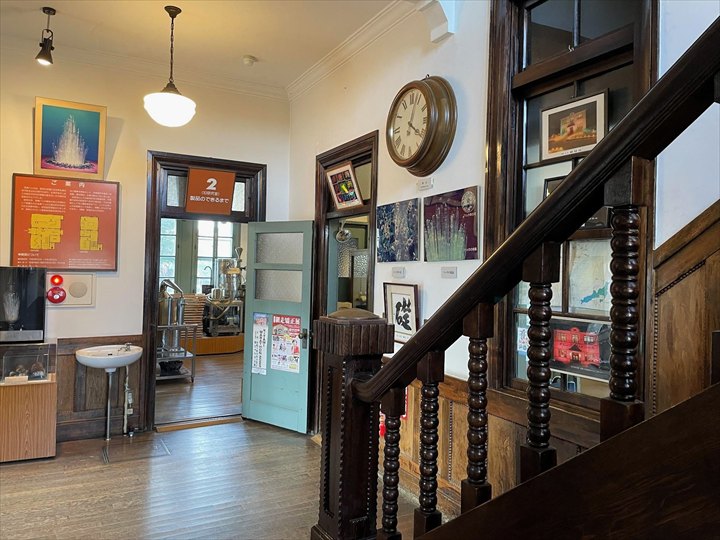 玄関を入ると、いまも当時の時計が静かに時を刻み続け、訪れる人を昭和の研究所時代へと誘います。木の床をきしませながら進むと、ほんのりとミントの香りが漂い、往時の研究員たちの息づかいまで感じられるようです。