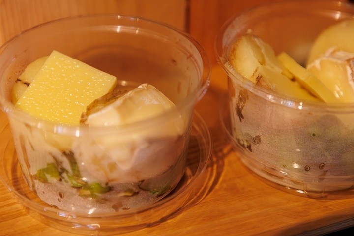 おつまみは十勝を代表する農産物であるじゃがいもやチーズを頂きました。お店では売っていない珍しい品種のじゃがいも「さやあかね」は甘くて美味しい!国内で一番甘いじゃがいもだそうです。十勝職人の手作りチーズと一緒に食べるのが美味しくてお酒が飲みたくなります。その下には枝豆も入っていました。眺めのいい馬車BARで食べるとより一層美味しく感じます。