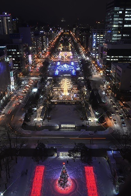 雪に包まれた中できらめくイルミネーションの輝きは見事です。あたたかい格好をして、イルミネーションで幻想的な雰囲気に包まれている札幌へぜひいらしてください。